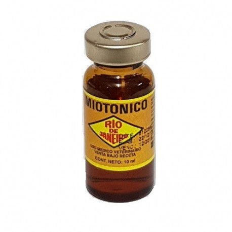 Este preparado es de alto valor para controlar todos aquellos casos en que los animales necesitan de un estímulo vitamínico cardiotónico muscular. Por múltiples factores, en la época invernal o en la época de pastos de verdeos, es frecuente observar animales que muestran signos de deficiencia que se traducen por falta de coordinación de movimientos, agitación y posteriormente caídas.El Miotónico Río de Janeiro tiende a restablecer el equilibrio nutricional de los animales que por falta de ingestión o en estados de parasitosis o preñez dieron como consecuencia el cuadro clínico de desnutrición general con manifestaciones tróficas y cardíacas .Es importante tener en cuenta que la presencia de vitaminas B1 y B12 en altas concentraciones asociadas a un cardiotónico y un tónico muscular contribuyen a restaurar en breve tiempo a todos aquellos animales que por falta de ingestión o deficiencias en la asimilación dan como consecuencia caídas o dificultades ambulatorias.
